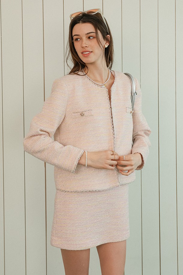 Button sleeveless tweed mini dress_PINK