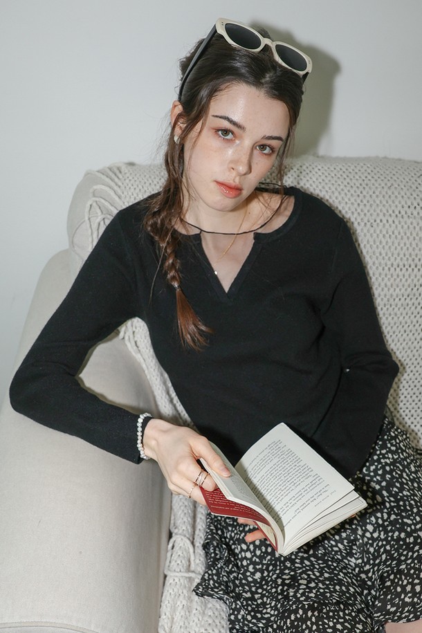 Sheer neckline knit top_3color