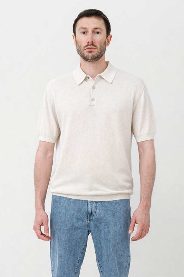 [4월 20일 예약배송] Nouvelle Fine 캐시미어 코튼 폴로 반팔니트 아이보리