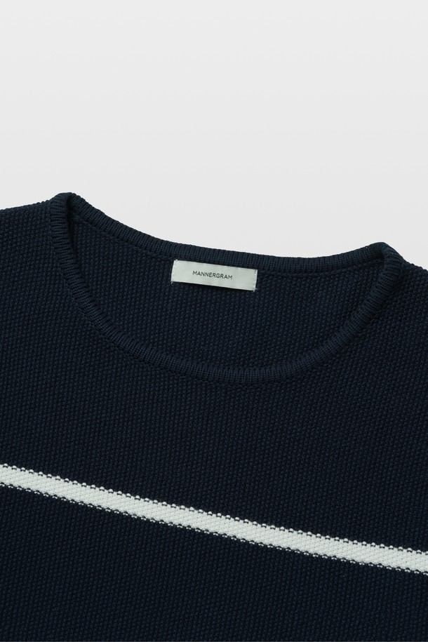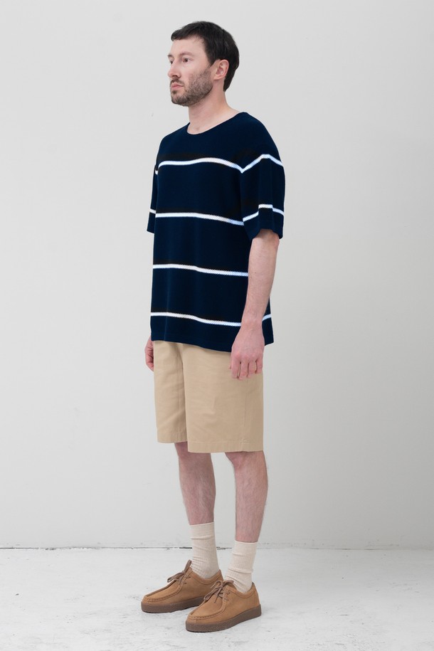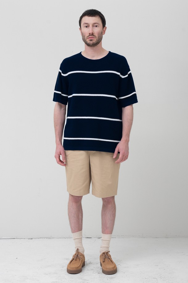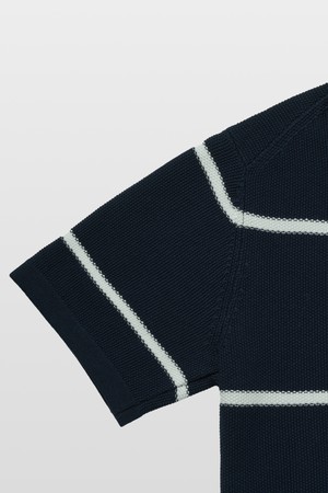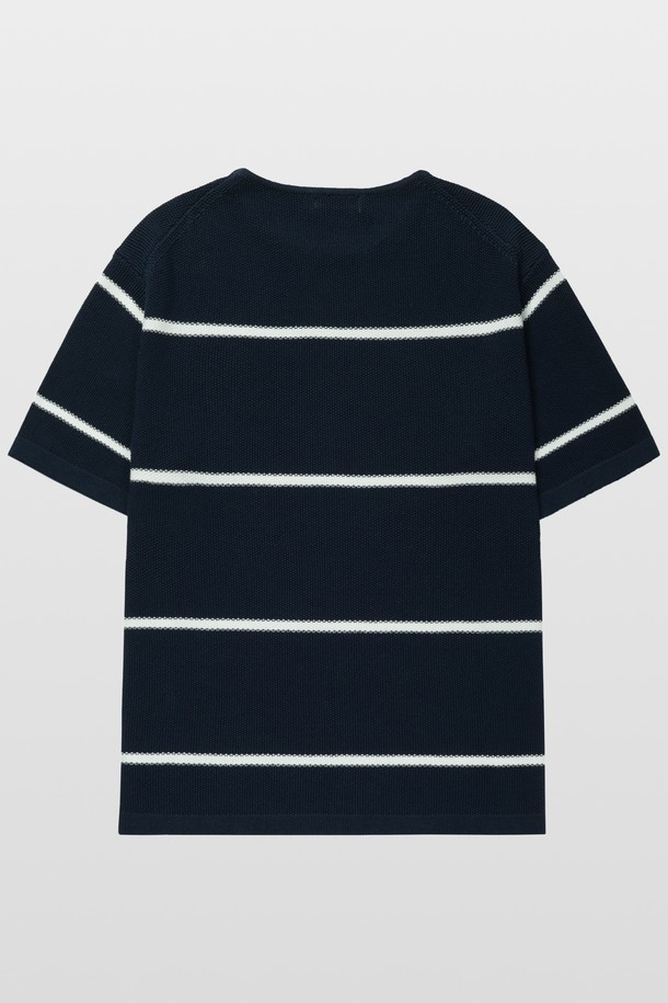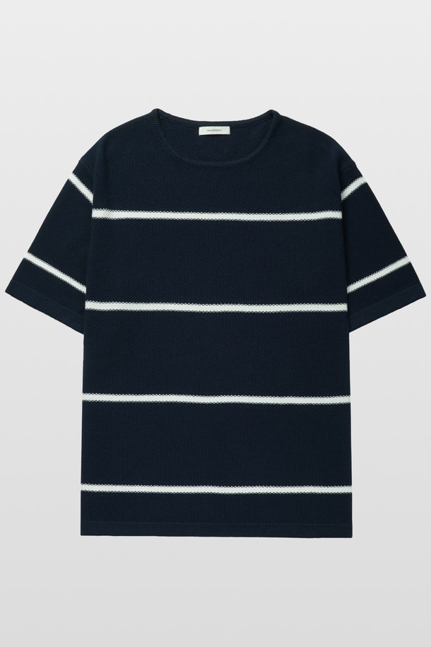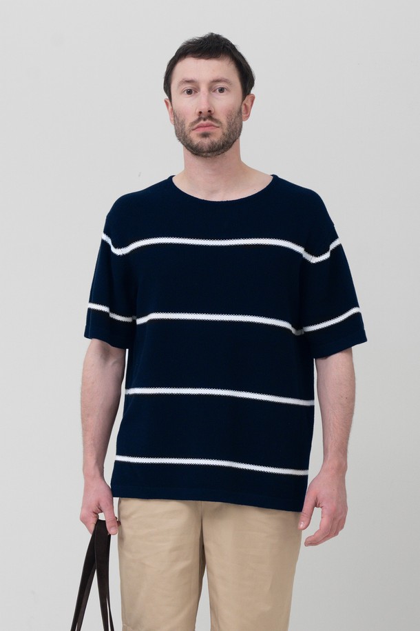 스트라이프 보트넥 코튼100 반팔니트 다크 네이비