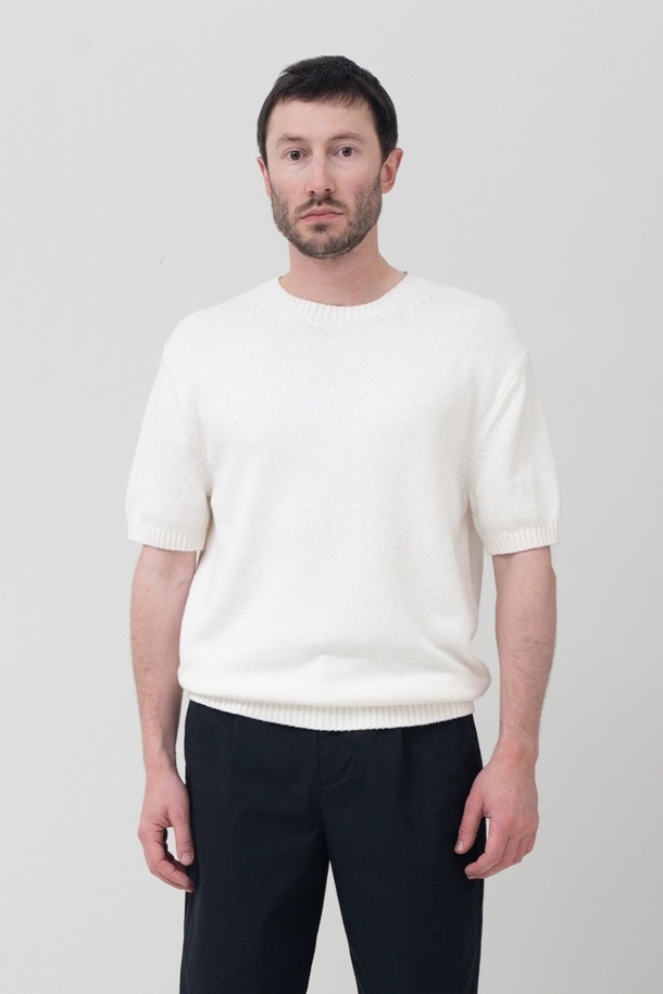 UPW 워셔블코튼 라운드 반팔니트 오프 화이트