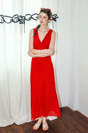 Polka dot sleeveless long dress_RED