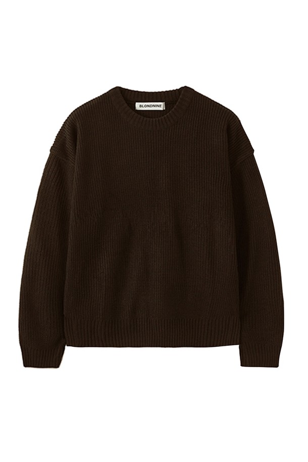 크루넥 리브 니트 스웨터_크롭 브라운