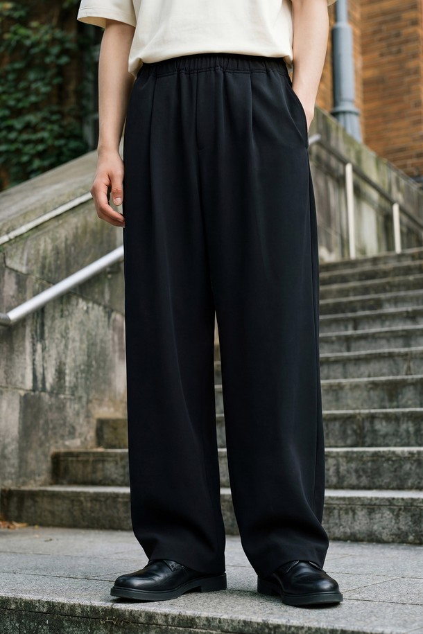 클린 원턱 밴딩 와이드 슬랙스 블랙 KJLP2705