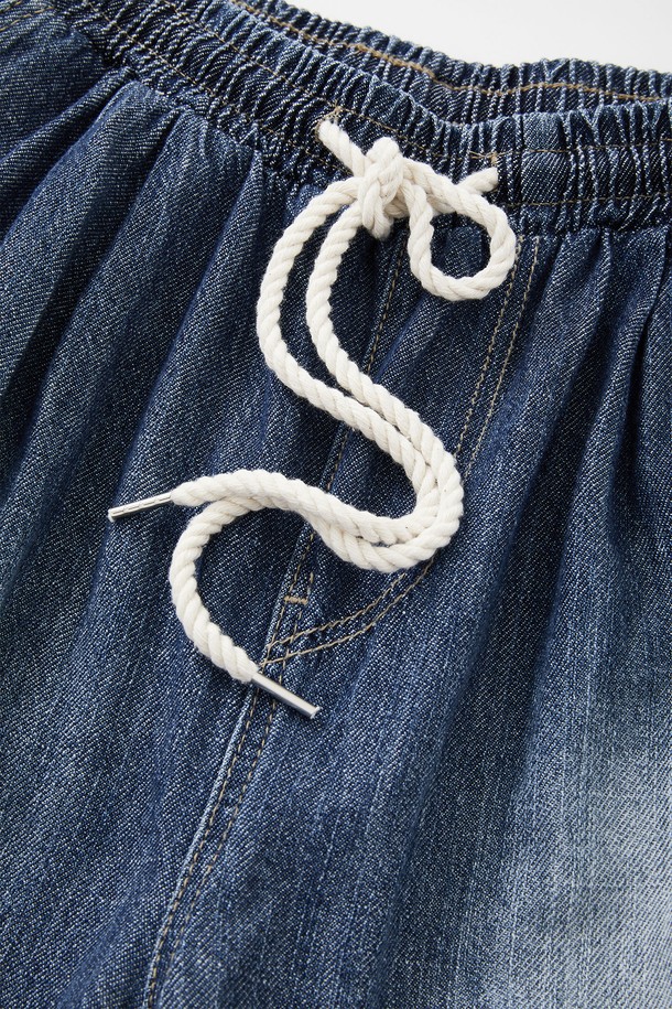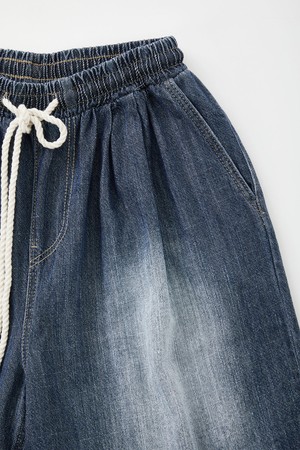 진청 워싱 린넨 밴딩 하프 팬츠 DSPT113