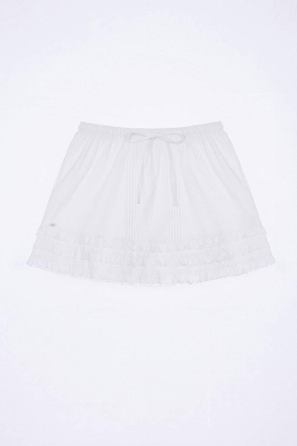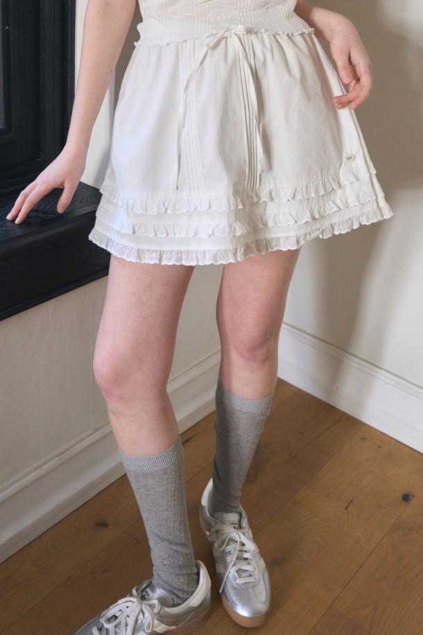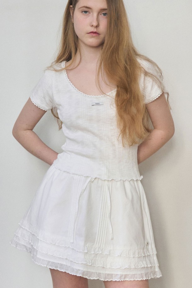 LACE FRILL COTTON LAYERED SKIRT_IVORY