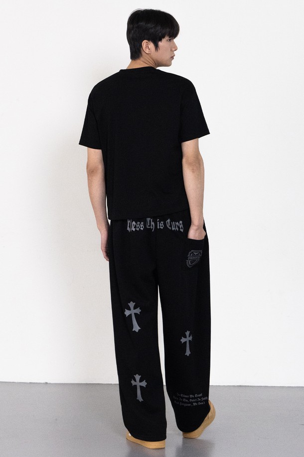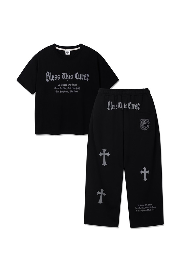 [SET] 앨빈클로 BLESS 크롭핏 반팔티셔츠 원턱 와이드 트레이닝 바지 셋업