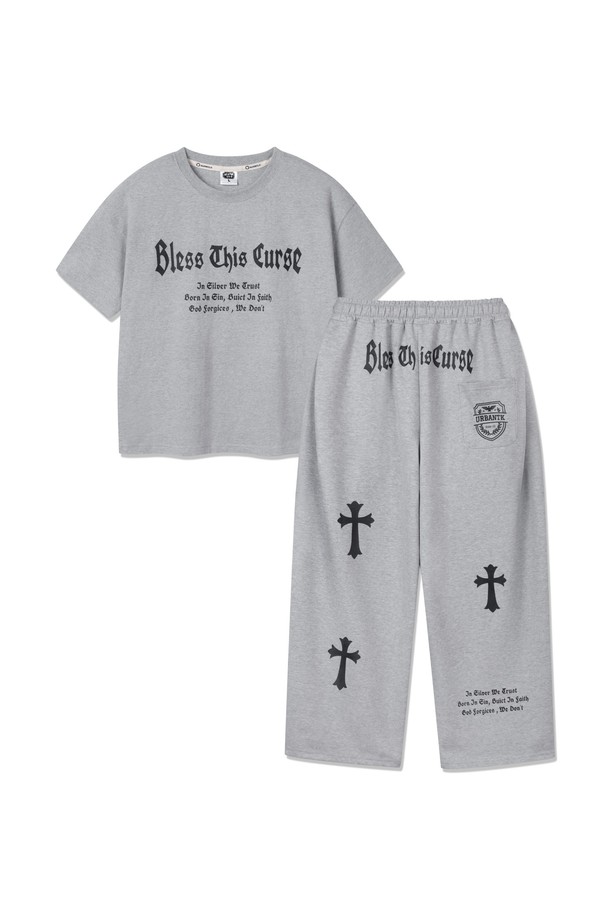 [SET] 앨빈클로 BLESS 크롭핏 반팔티셔츠 원턱 와이드 트레이닝 바지 셋업