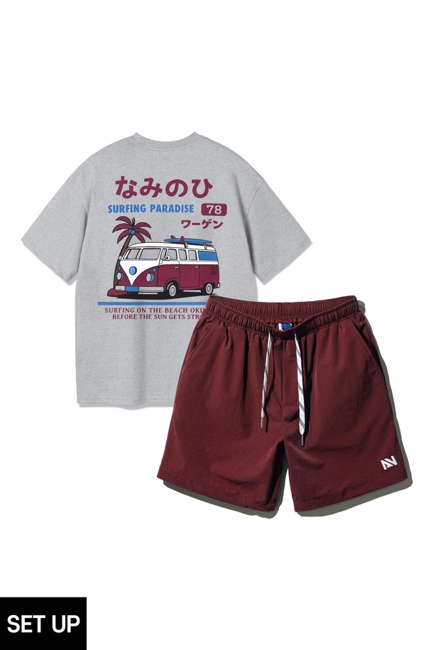 [SET] 앨빈클로 CAMPER VAN 반팔티셔츠 스트링 포인트 우븐 반바지 셋업