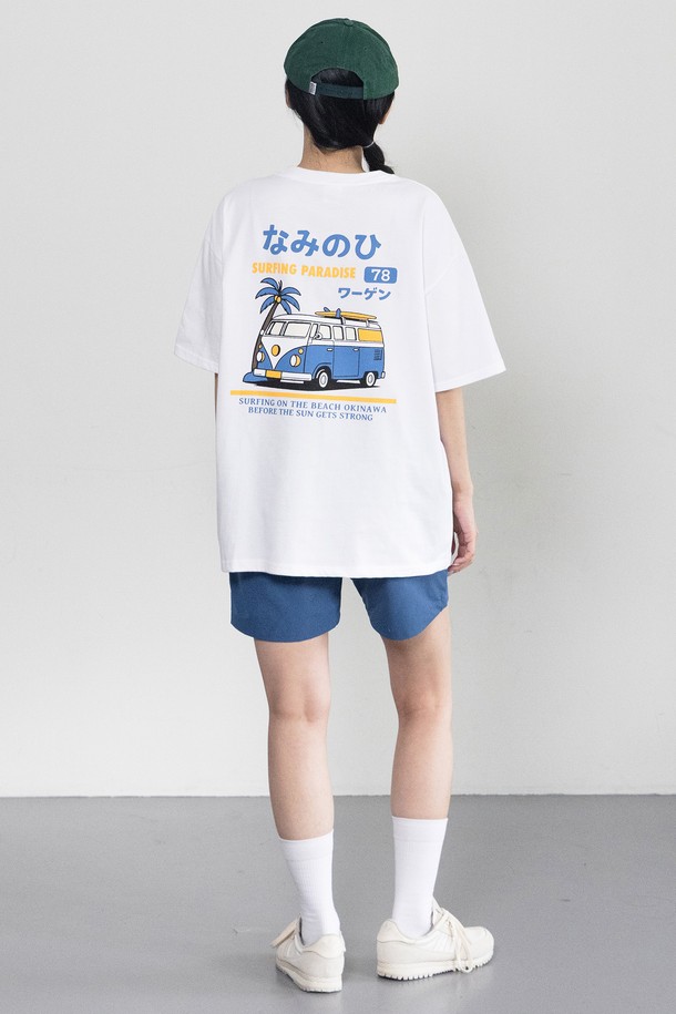 [SET] 앨빈클로 CAMPER VAN 반팔티셔츠 스트링 포인트 우븐 반바지 셋업