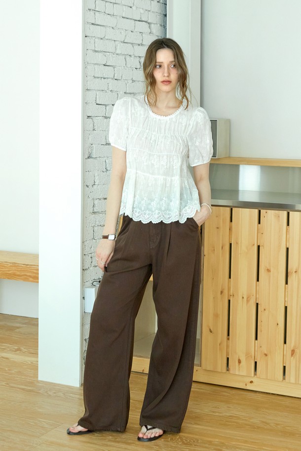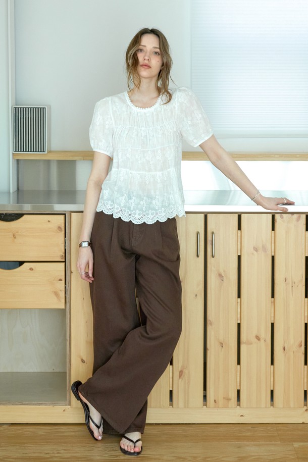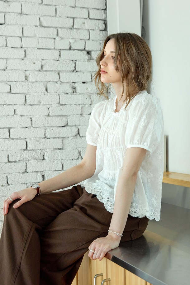 코튼 레이스 셔링블라우스_WHITE