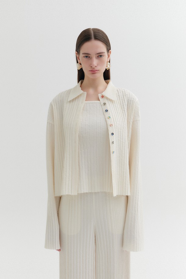 플리츠 버튼 업 셔츠 - 아이보리