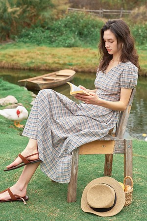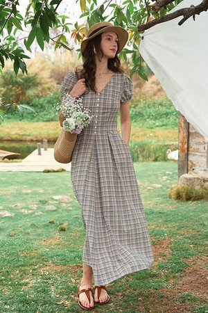Ballad plaid v-neck dress