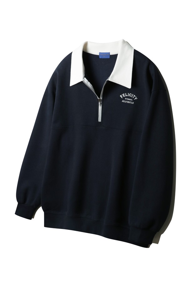 [DE LUXE] 앨빈클로 FELICITY 반집업 배색 카라 맨투맨 DLX7508 (4 COLOR)