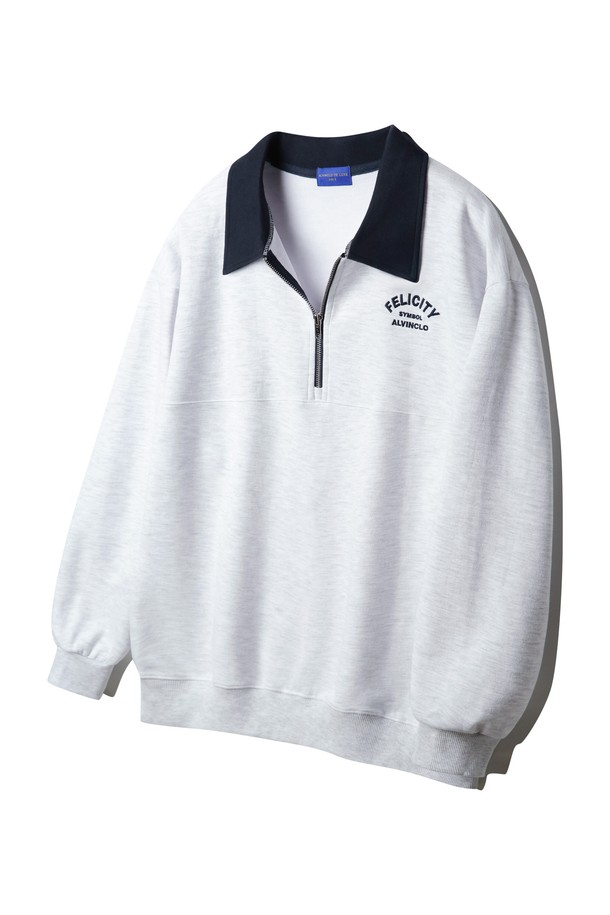 [DE LUXE] 앨빈클로 FELICITY 반집업 배색 카라 맨투맨 DLX7508 (4 COLOR)