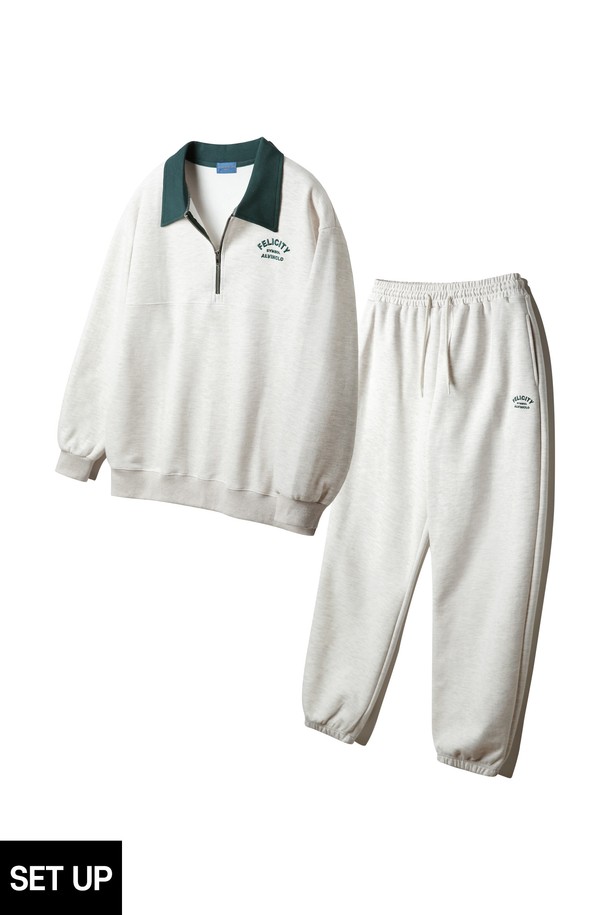[DE LUXE] [SET] 앨빈클로 FELICITY 반집업 배색 카라 맨투맨 밴딩 조거 팬츠 셋업