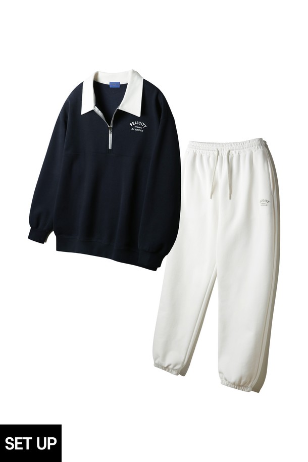 [DE LUXE] [SET] 앨빈클로 FELICITY 반집업 배색 카라 맨투맨 밴딩 조거 팬츠 셋업