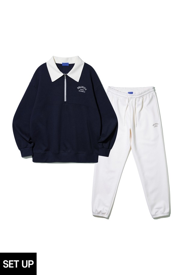 [DE LUXE] [SET] 앨빈클로 FELICITY 반집업 배색 카라 맨투맨 밴딩 조거 팬츠 셋업