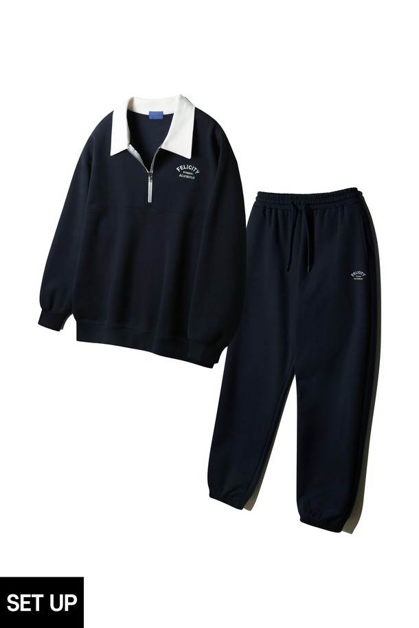 [DE LUXE] [SET] 앨빈클로 FELICITY 반집업 배색 카라 맨투맨 밴딩 조거 팬츠 셋업