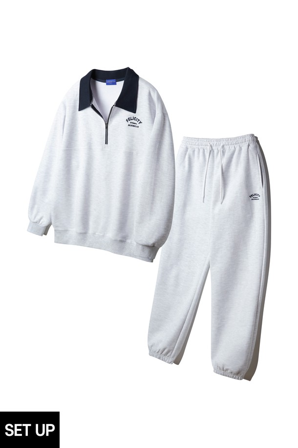 [DE LUXE] [SET] 앨빈클로 FELICITY 반집업 배색 카라 맨투맨 밴딩 조거 팬츠 셋업