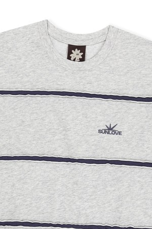Raw Edge Stripe Tee Heather Grey