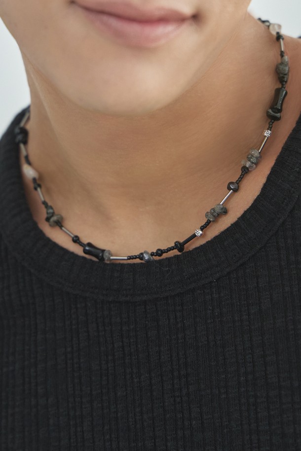 원석 튜브 믹스 네크리스_블랙