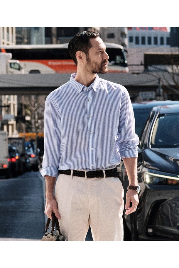 [자개단추] 소프트 린넨 셔츠_스트라이프 블루 (레귤러핏)_JDSXZ51CTL