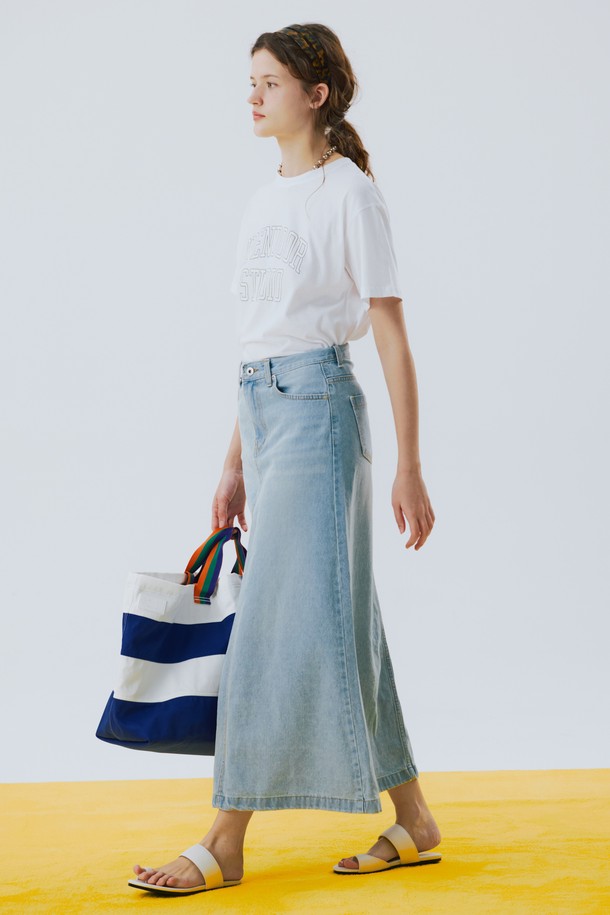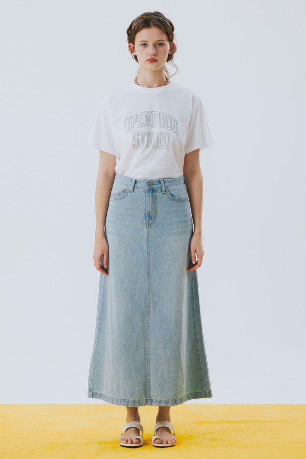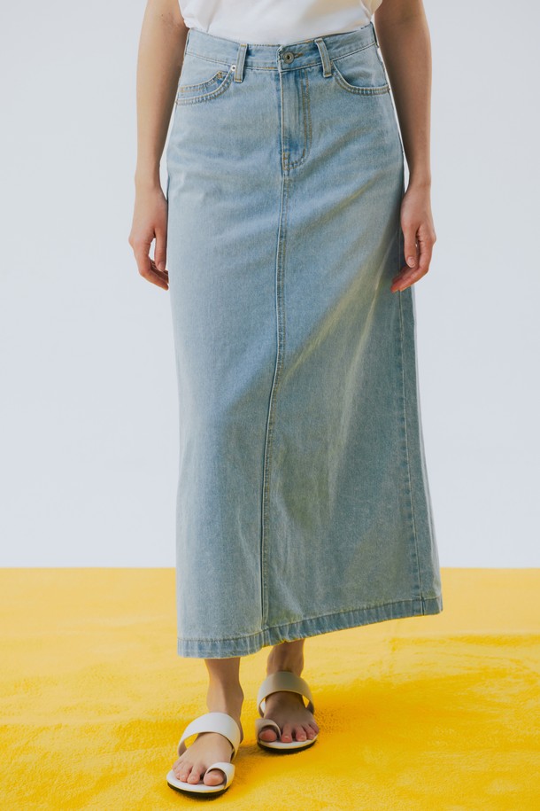 6poket denim long skirt Blue