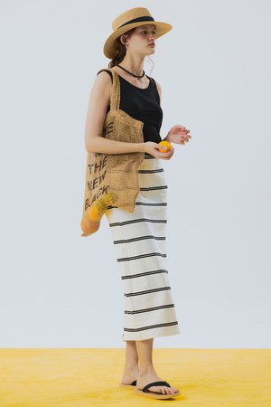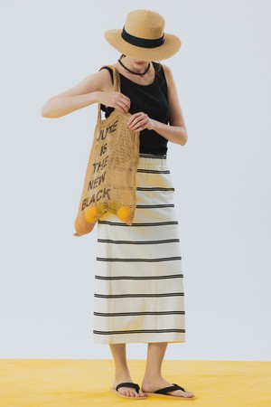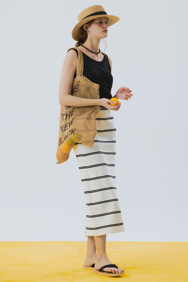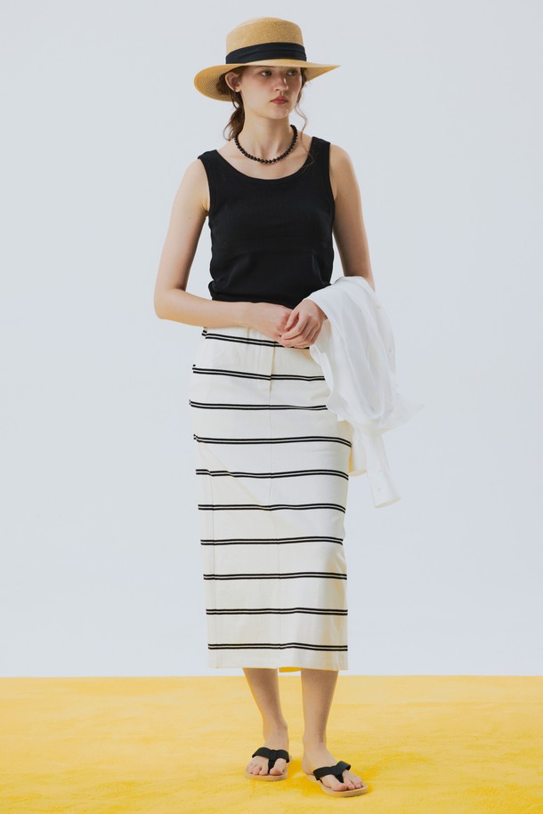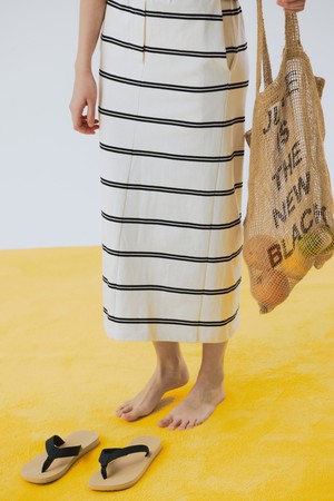 Stripe Cotton Long Skirt Ivory