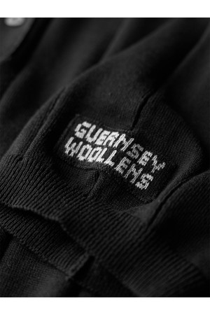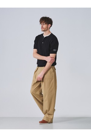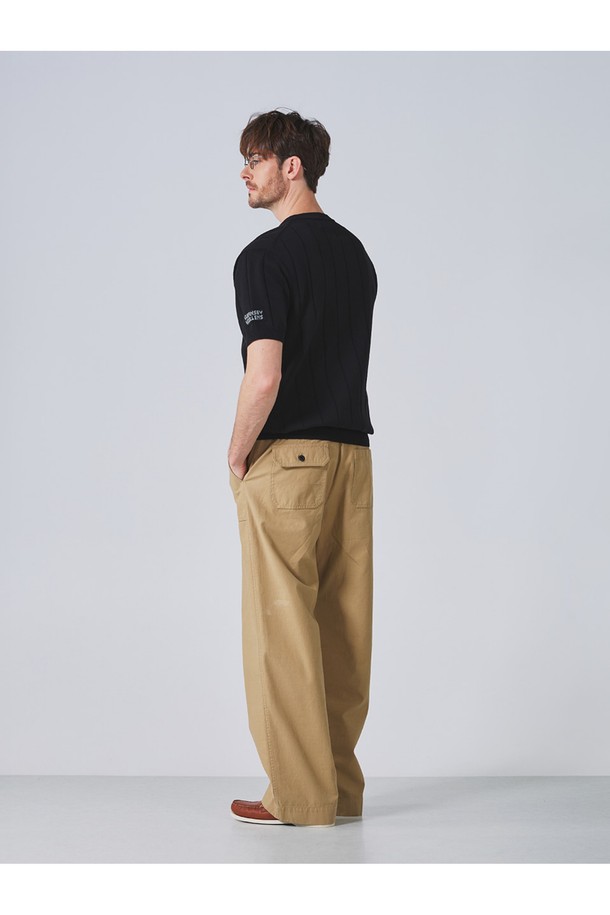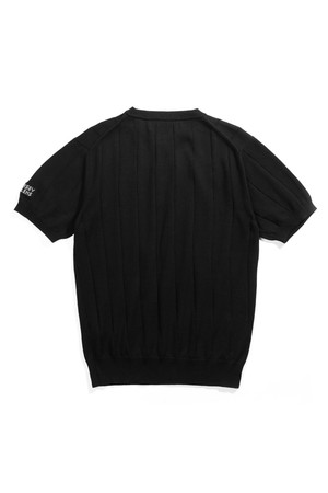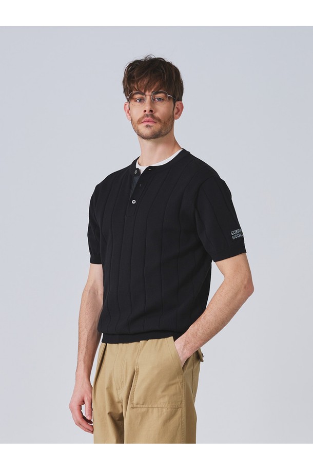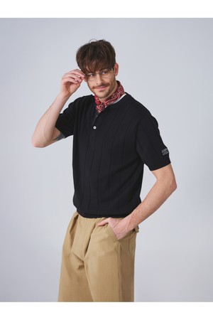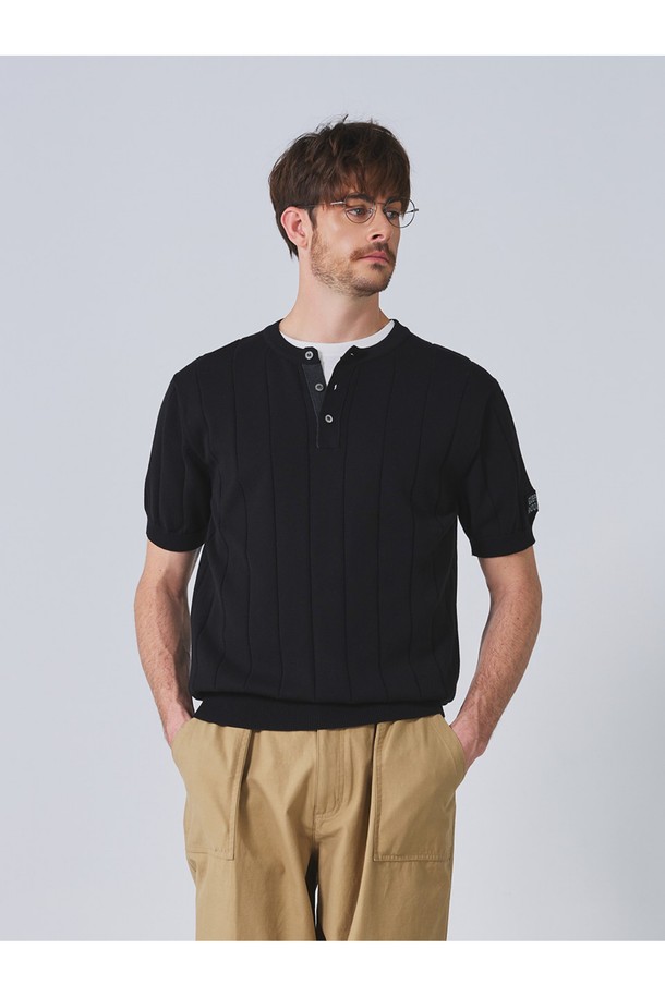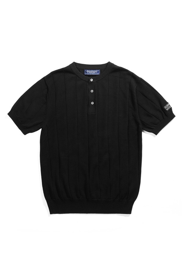 코튼 헨리넥 리브드 반팔 니트 - 블랙