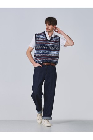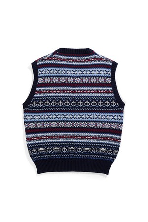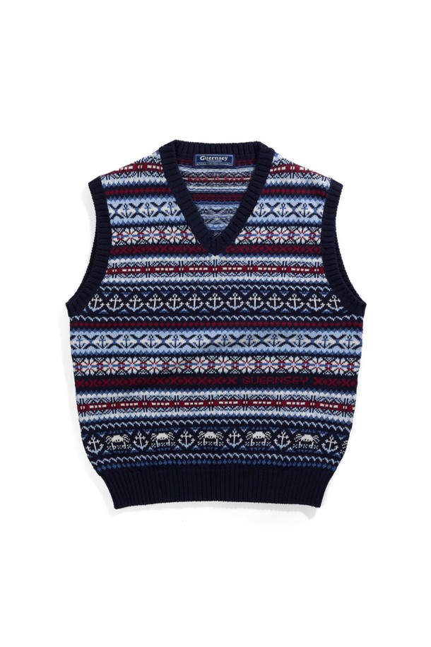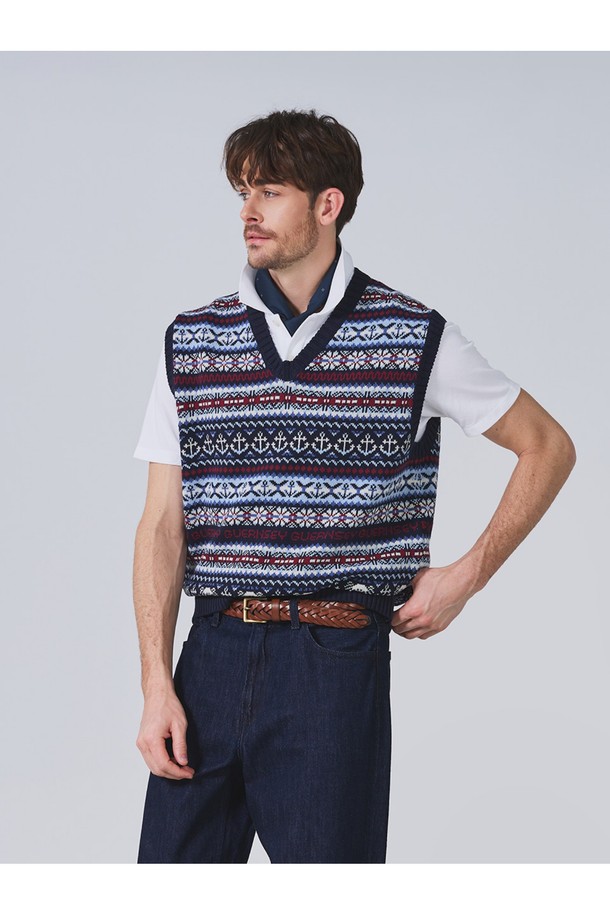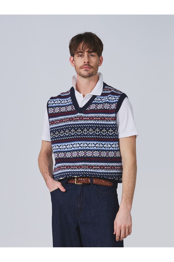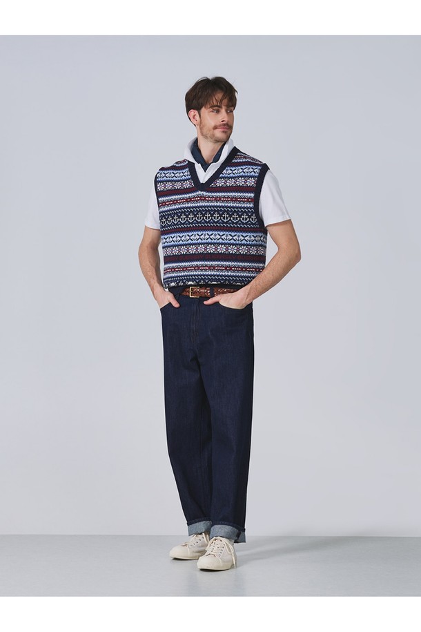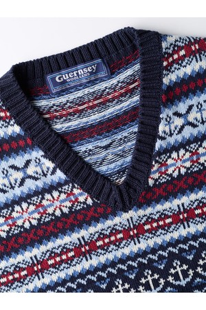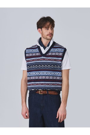 그랑 로크 페어아일 코튼 브이넥 베스트 - 네이비