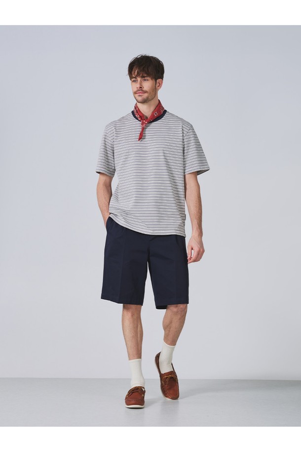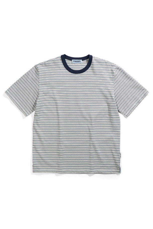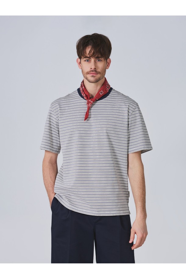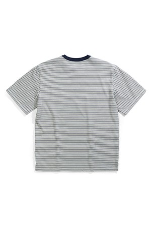 헤비 코튼 스트라이프 반팔 티셔츠 - 그레이