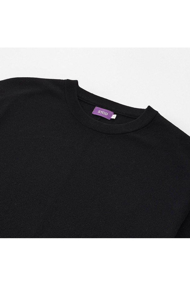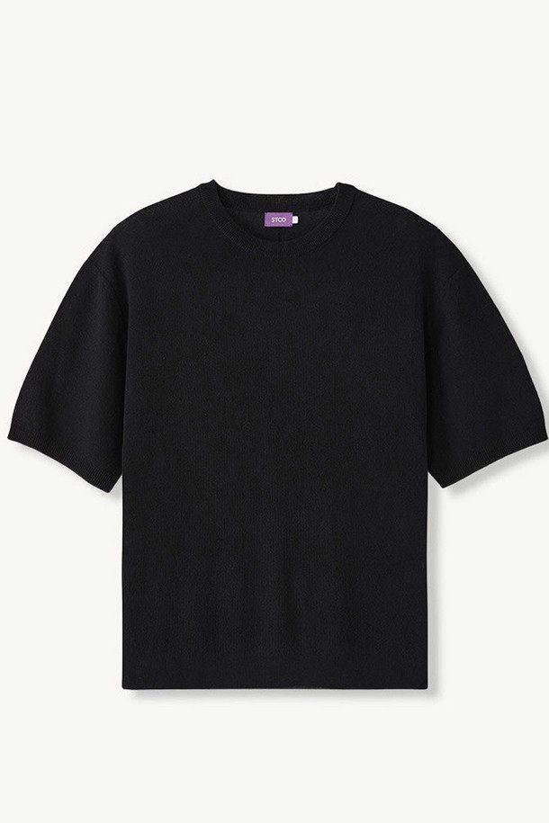 라운드 니트 티셔츠_블랙 (세미오버핏)_SKTVB51NSB