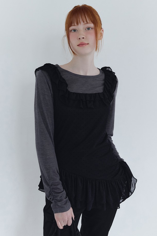 솔라 도트 프릴 슬리브리스-티셔츠 셋업