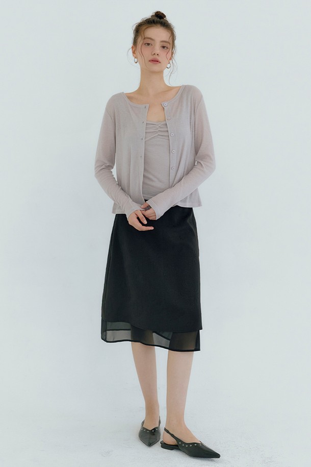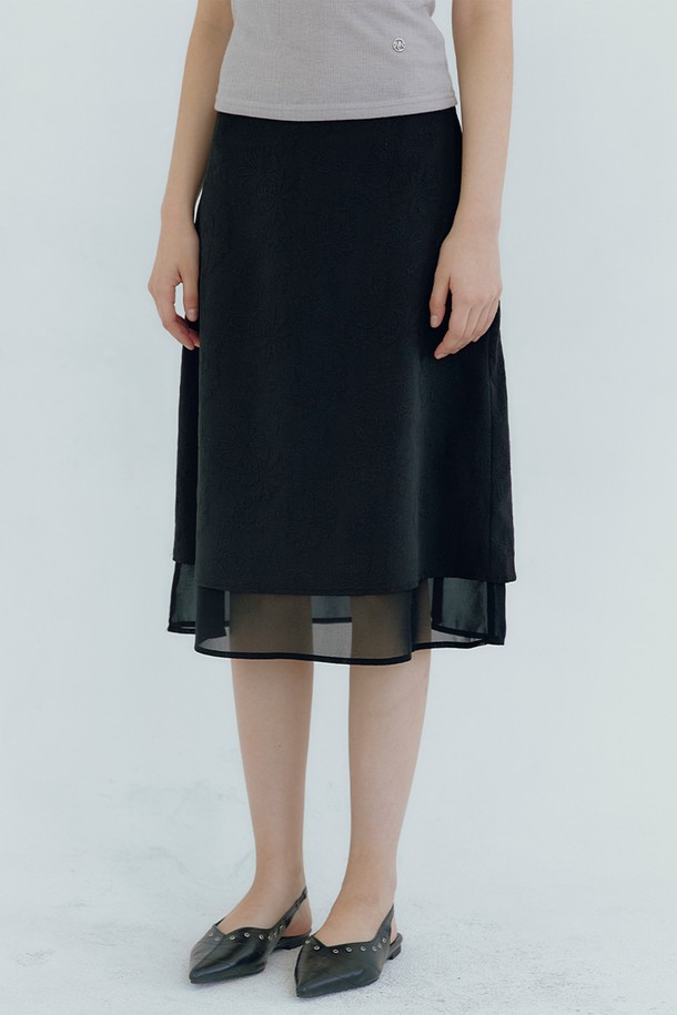 라이야 플라워 자가드 레이어드 미디 스커트