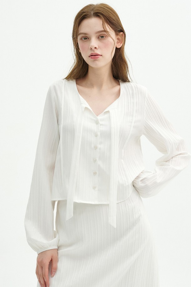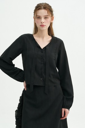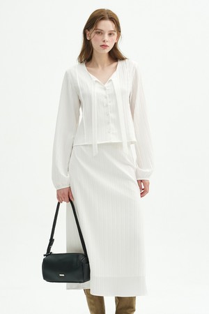 일리션 스트라이프 타이 블라우스 스커트 셋업