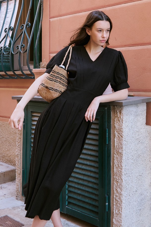 Volume v neck dress - 3color
