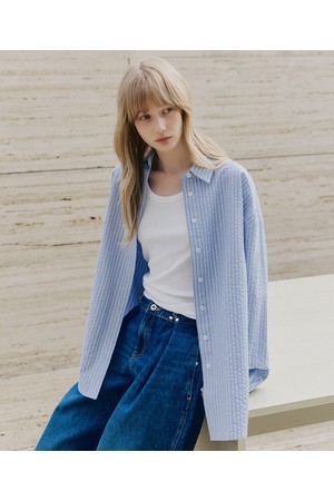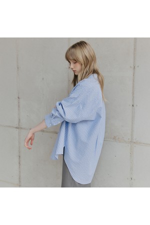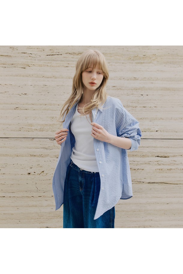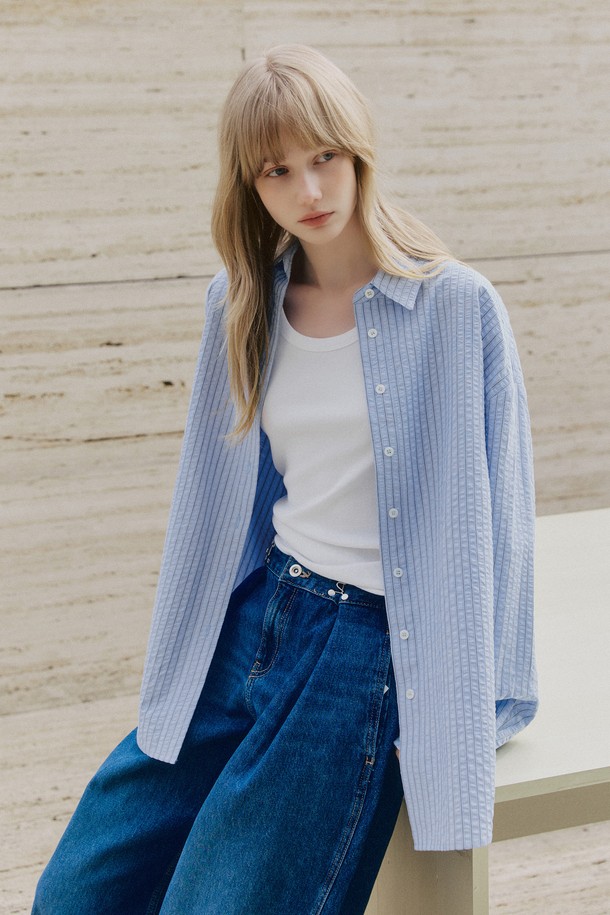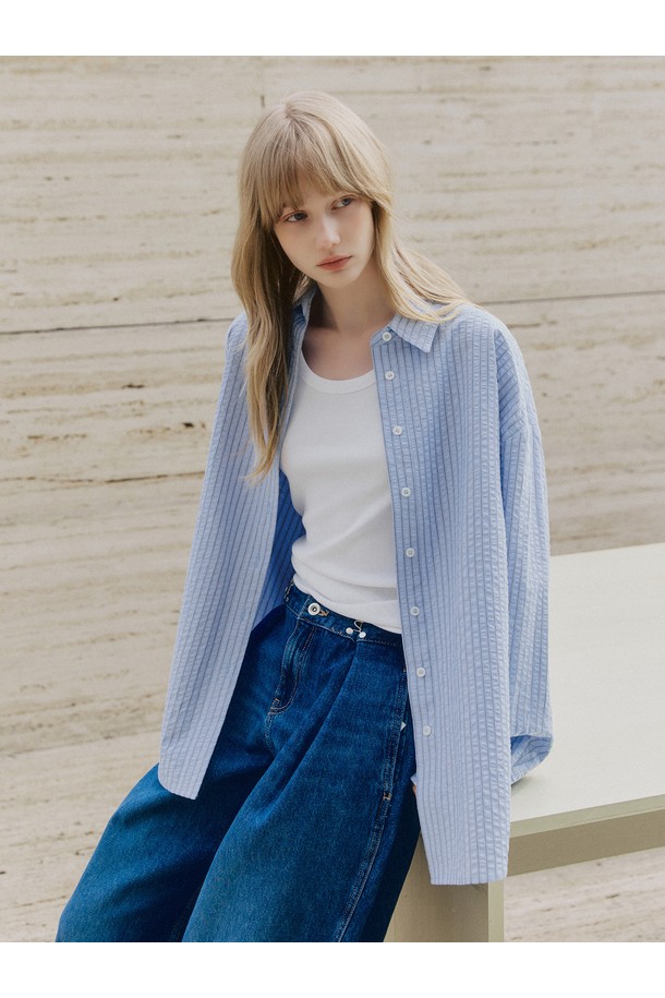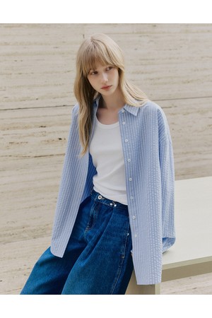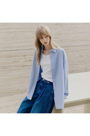 시어서커 오버핏 스트라이프 셔츠 [블루]