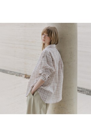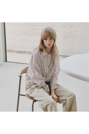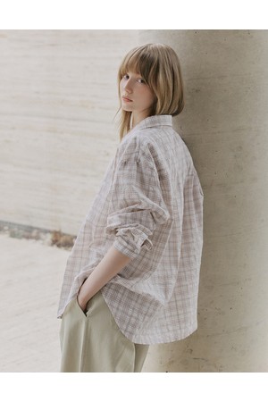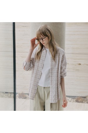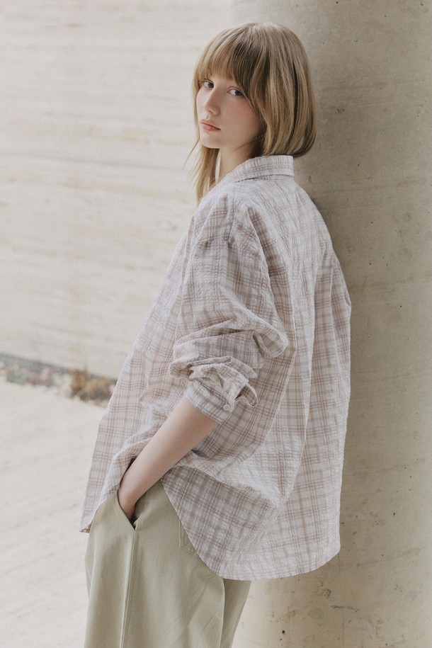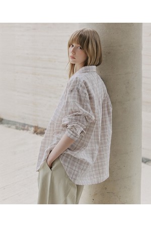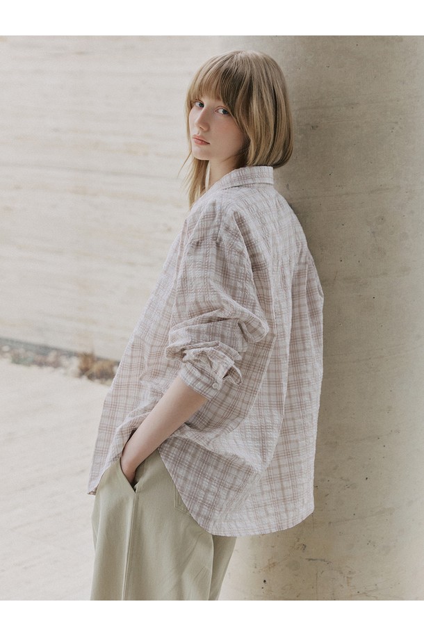 시어서커 오버핏 체크 셔츠 [핑크]