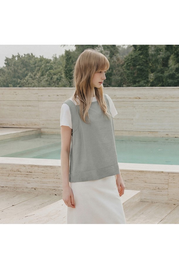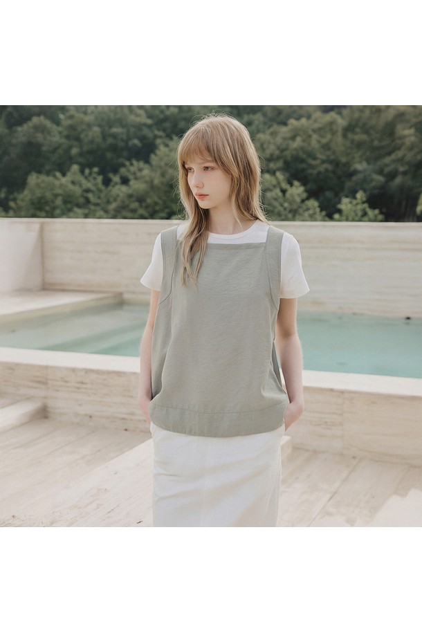 데일리 모달 슬리브리스 블라우스 [그레이]