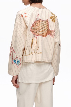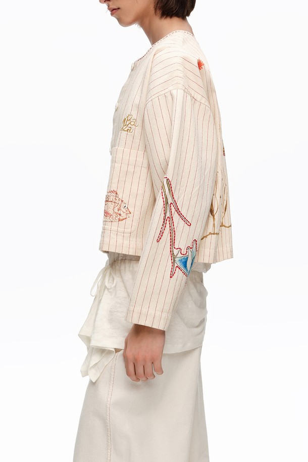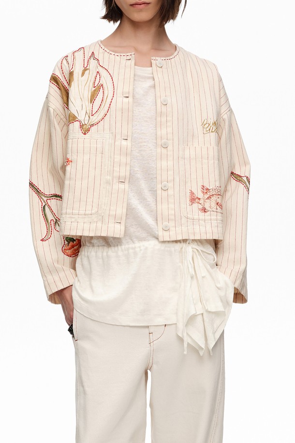 [26SS]빔바이롤라 스티칭 스트라이프 프린트 자켓 - 아이보리 B265AWJ012IVB