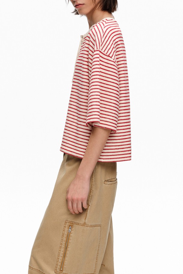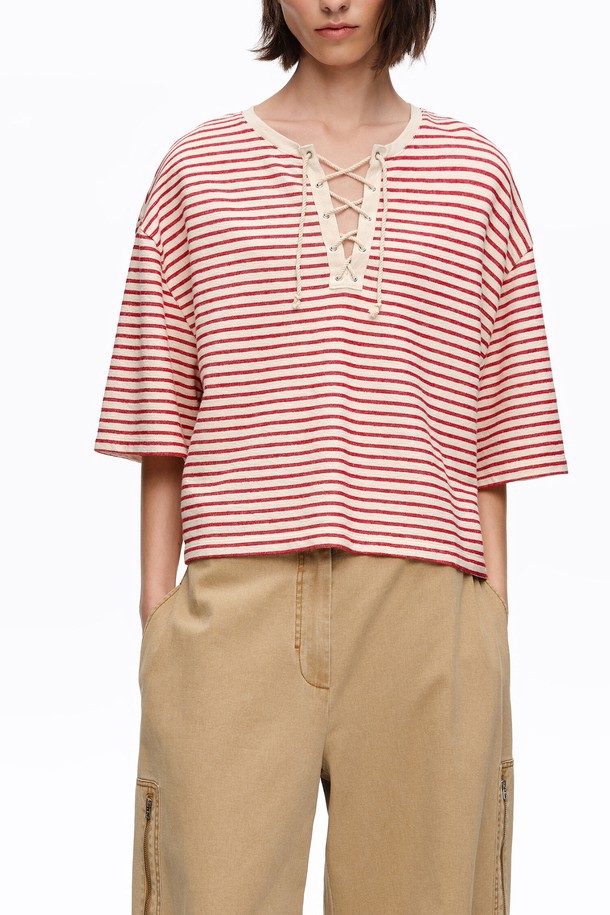 [26SS]빔바이롤라 스트라이프 크루넥 티셔츠 -레드 B265AWT018RDB