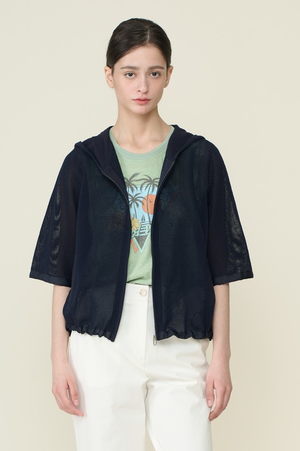[26SU] 크로셰 후드집업 가디건 - DARK NAVY B6B3K10356