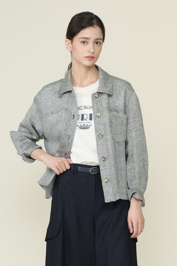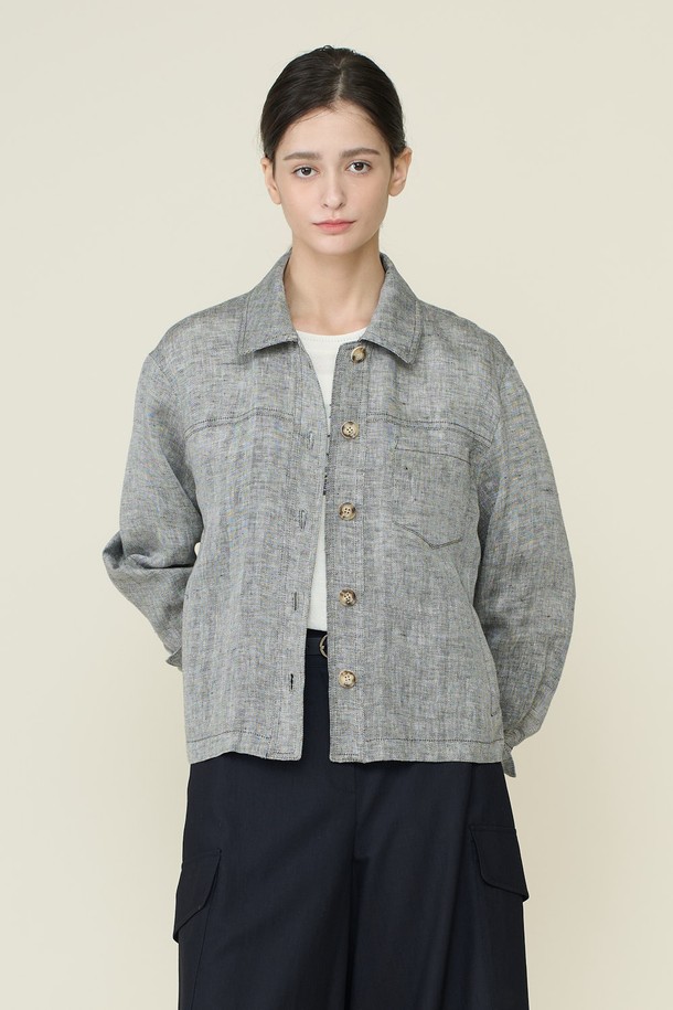 [26SU] 린넨헤링본 자켓 - BLACK B6B3J10999