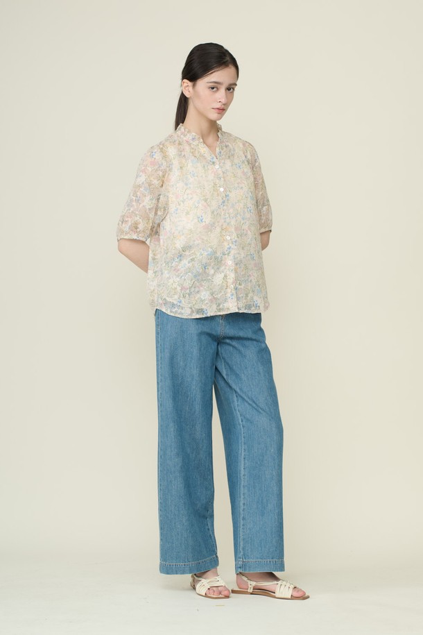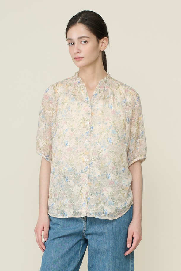 [26SU] 넥 페고딩 프린트 블라우스 - LIGHT BEIGE B6B4B48871
