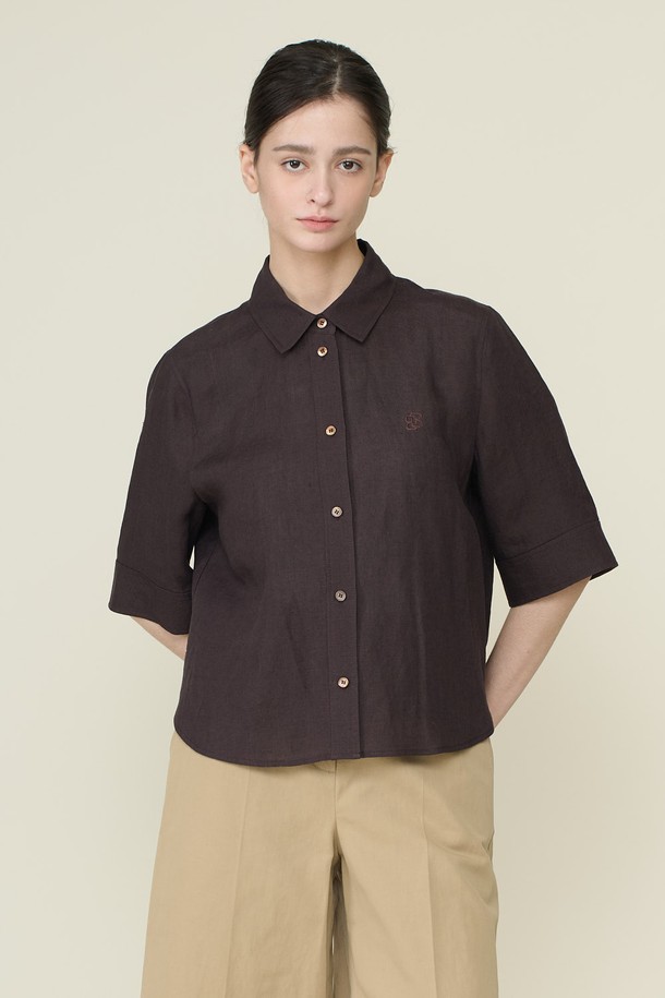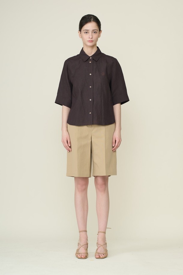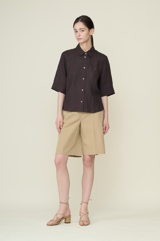 [26SU] 린넨 로고 자수 셔츠 - BROWN B6B4B42774