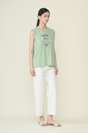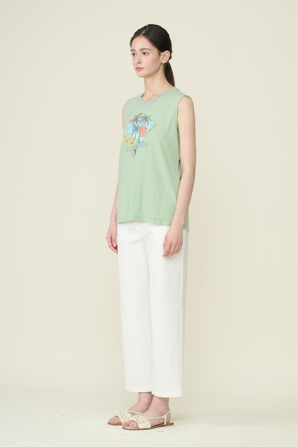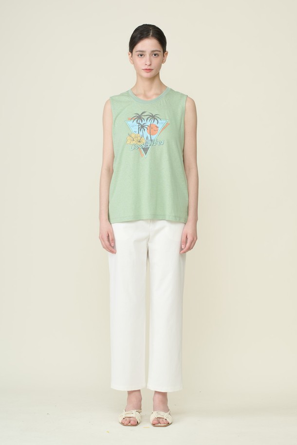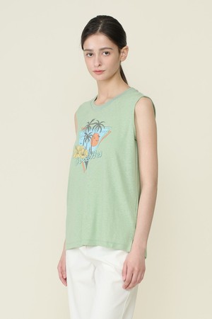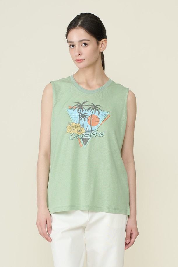 [26SU] 슬리브리스 프린트 티셔츠 - GREEN B6B6X44542