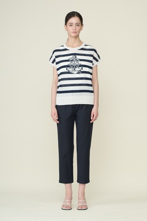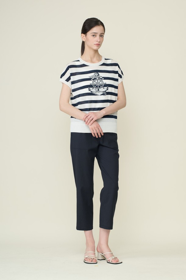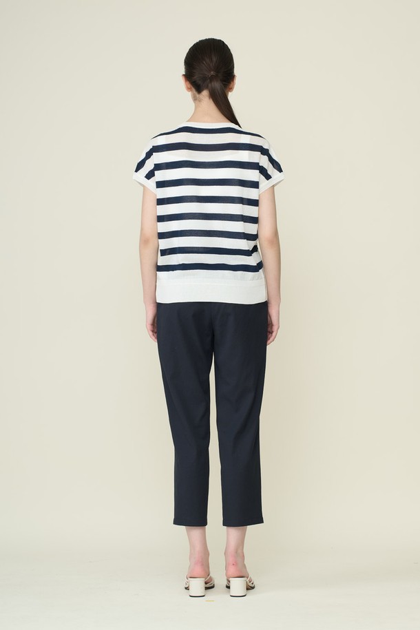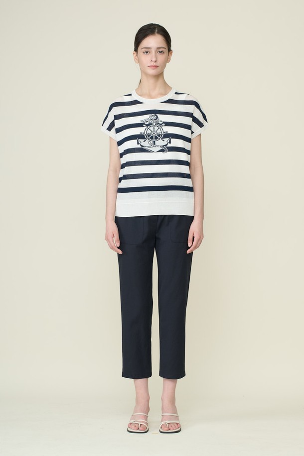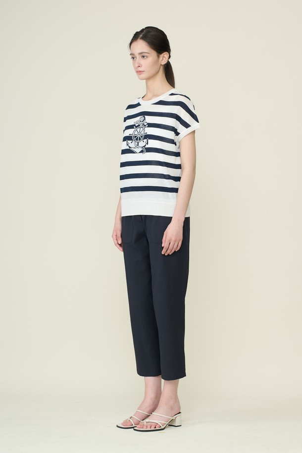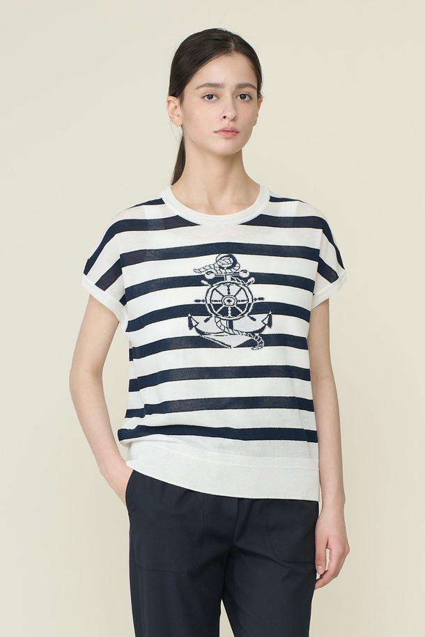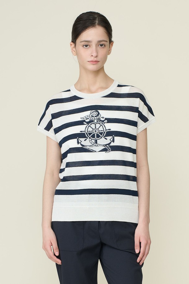 [26SU] 마린 스트라이프 드랍숄더 니트 탑 - WHITE B6B5K42410