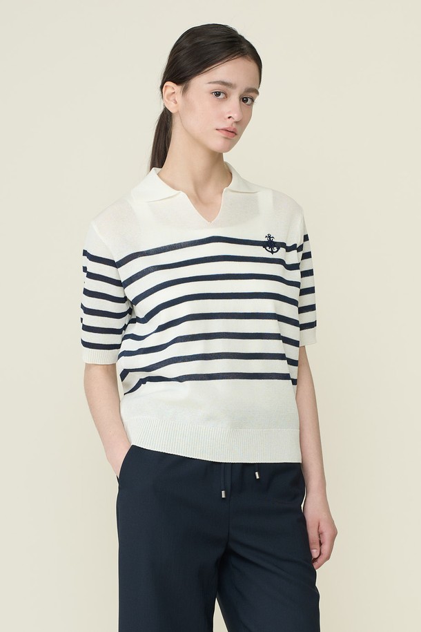 [26SU] 마린 스트라이프 카라 풀오버 - NAVY B6B4K48255