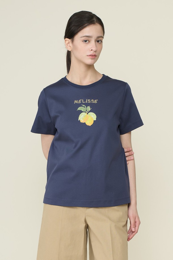 [26SU] 비딩 반팔 티셔츠 - NAVY B6B4X42655